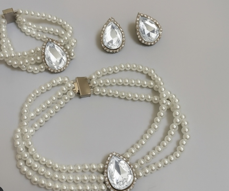 گردنبند و گوشواره و دستبند نگین مرواریدی